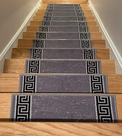 Stair Treads Skid Slip Resistant Backing Indoor Carpet Stair Treads Meander Greek Key Design 8 Inch X 26 Inch Set Of 15 Grey